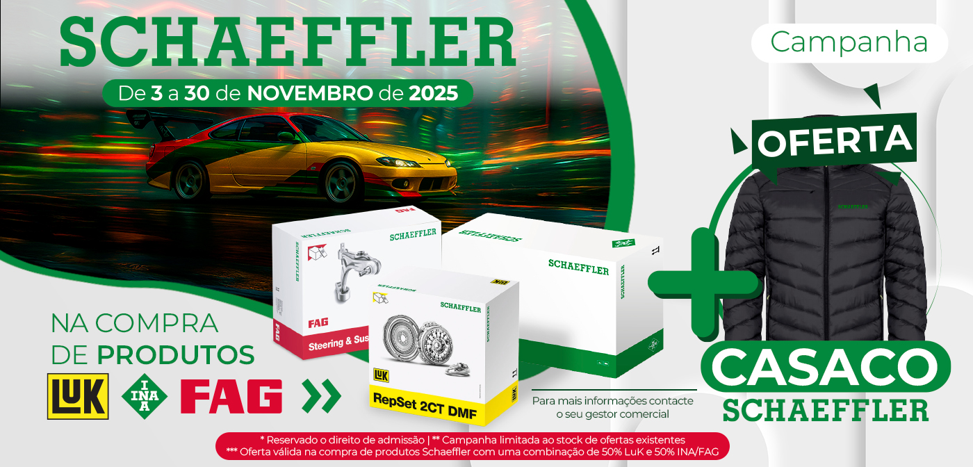 Durante o mês de novembro de 2025, ao adquirir produtos Schaeffler, recebe casacos Schaeffler de oferta.